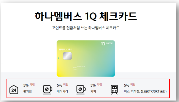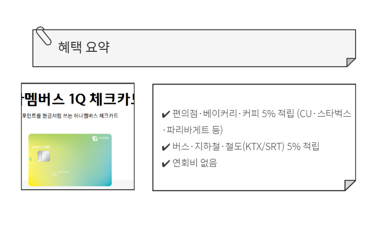 3️⃣ 하나멤버스 1Q 체크카드 (교통·카페·편의점 특화)