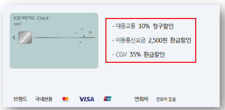 2️⃣ KB국민 노리체크카드 (할인 혜택 최고)