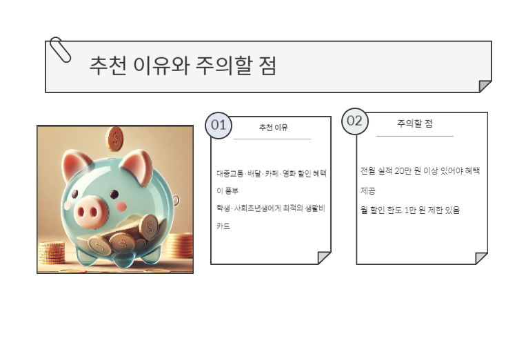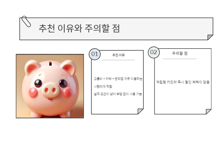 - 교통비 + 카페 + 편의점 자주 이용하는 사람에게 적합