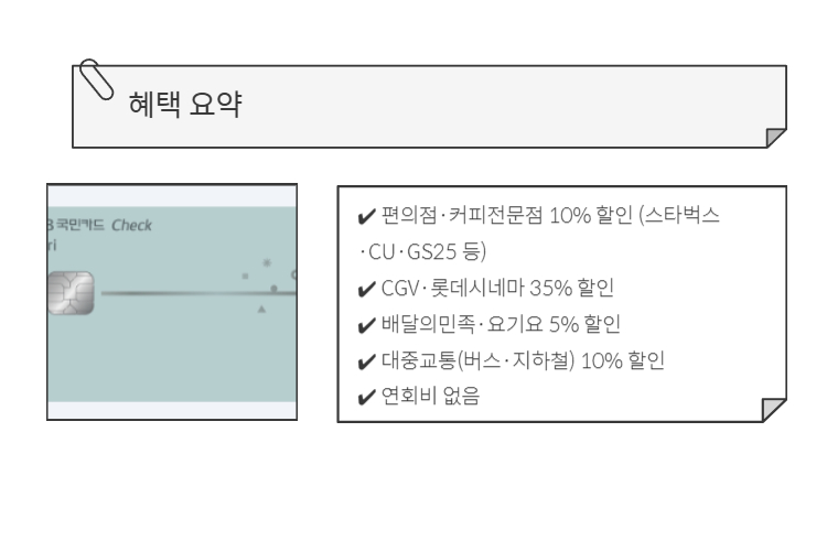 ✔ 교통·배달앱·영화 할인 → KB국민 노리체크카드