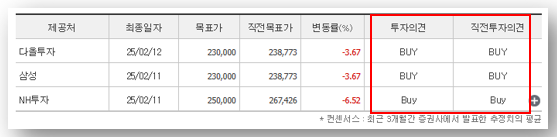- 증권사 평균 목표주가: 230,000원 ~ 267,426원