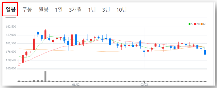 - 20일선(179,025원)과 50일선(180,604원)이 저항선으로 작용 중