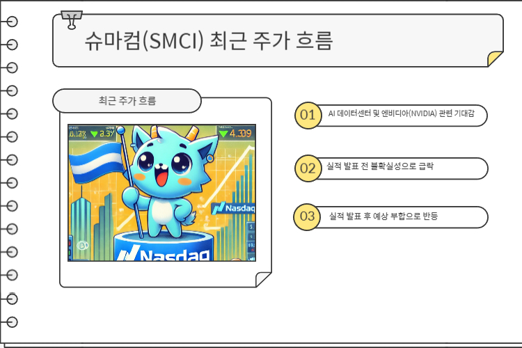 슈퍼 마이크로 컴퓨터(슈마컴, SMCI)은 AI 인프라 성장 기대감 속에서 투자자들의 관심이 집중되고 있는데요, 슈마컴(SMCI)의 주가 흐름, 실적, 전망을 종합적으로 분석해보겠습니다.