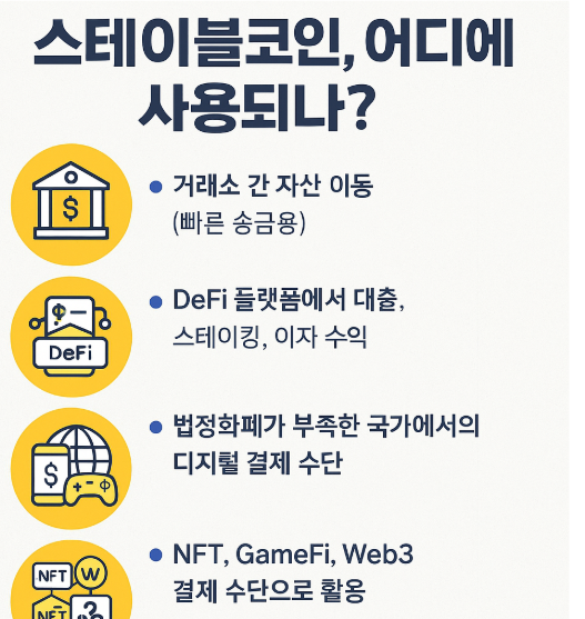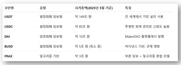 - 🔹 대표 코인: USDT(테더), USDC, BUSD