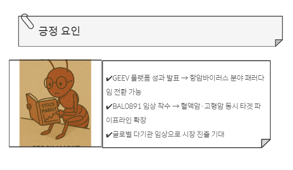 📌 현재는 적자 상태지만, 플랫폼 기술 확보 + 임상 성과가 향후 기업가치 재평가로 이어질 수 있다는 점에서 투심이 살아나고 있습니다.