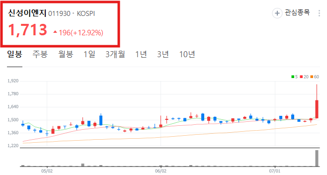 안녕하세요, 신성이엔지가 거래량 폭발과 함께 주가가 급등하고 있습니다.