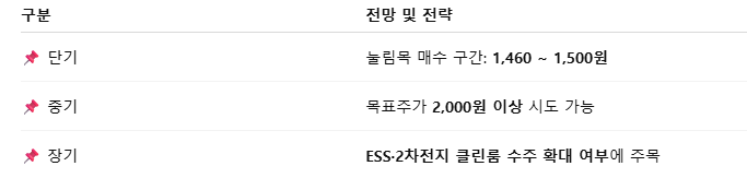 📌 장기: ESS·2차전지 클린룸 수주 확대 여부에 주목