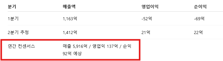 - 1분기 적자 → 2분기 흑자 전환 기대
