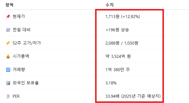 - 유통 주식 대비 회전율 급등 → 단기 주가 탄력 ↑