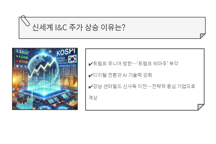 신세계 I&C가 2025년 4월 24일, 3거래일 연속 상승하며 장중 22% 넘는 급등세를 보이고 있는데요, 이번 주가 상승의 이유로는 트럼프 주니어 방한 소식과 함께 신세계그룹의 디지털 전환, 리테일 테크 강화 전략이라고 볼 수 있습니다. 신세계 I&C의 주가 전망과 주가 상승 이유, 배당금 정보까지 자세히 알아보도록 하겠습니다.