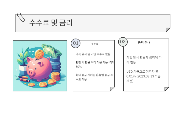 - USD 기준으로 거주자 연 0.01% (2023.03.13 기준, 세전)