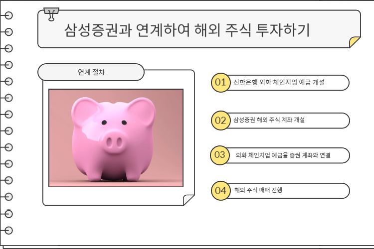 신한은행 외화 체인지업 예금은 삼성증권 등과 연계하여 해외 주식 투자를 더욱 편리하게 할 수 있습니다.