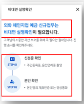 - 본인 계좌 인증 또는 영상 통화