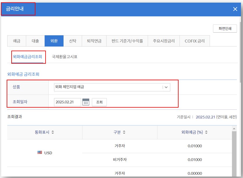 - USD 기준으로 거주자 연 0.01% (2023.03.13 기준, 세전)