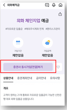 - 외화 체인지업 예금을 증권 계좌와 연결