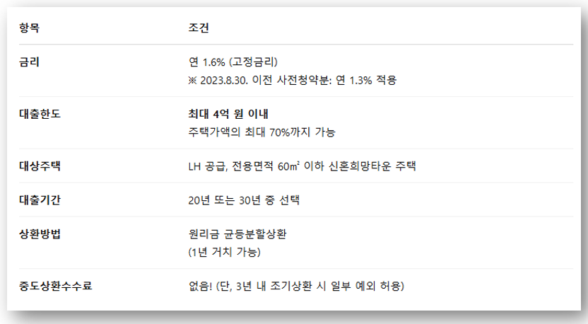 연 1.6% 고정금리, 최장 30년 대출, 중도상환수수료 면제