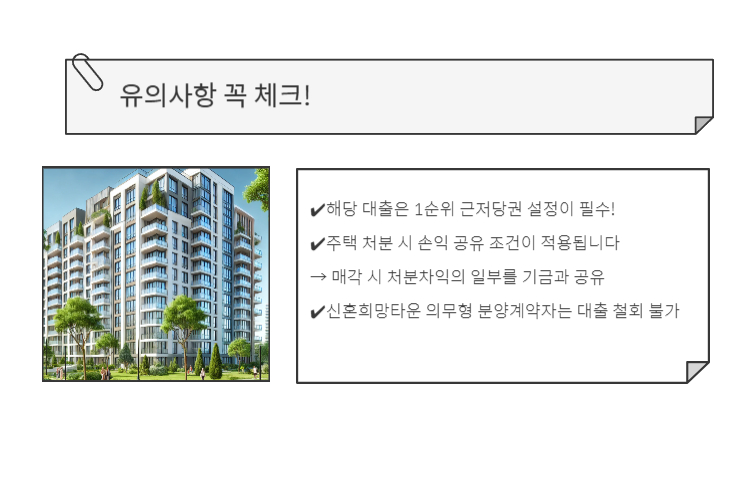 - 주택 처분 시 손익 공유 조건이 적용됩니다
