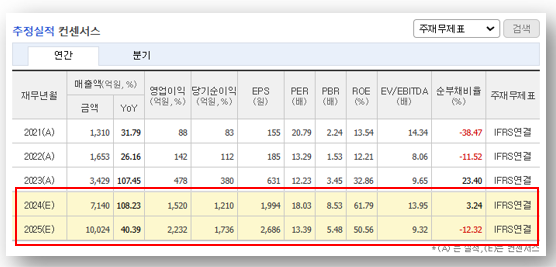 • 2025년 예상 매출: 1조 24억 원 (+40.9%)