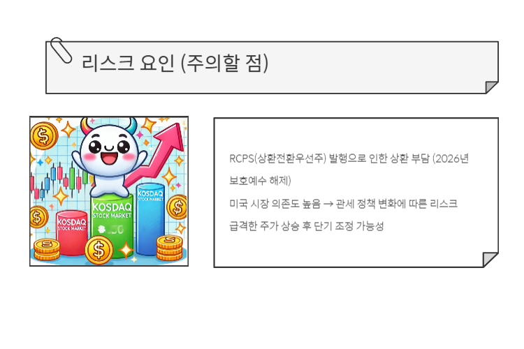 • RCPS(상환전환우선주) 발행으로 인한 상환 부담 (2026년 보호예수 해제)