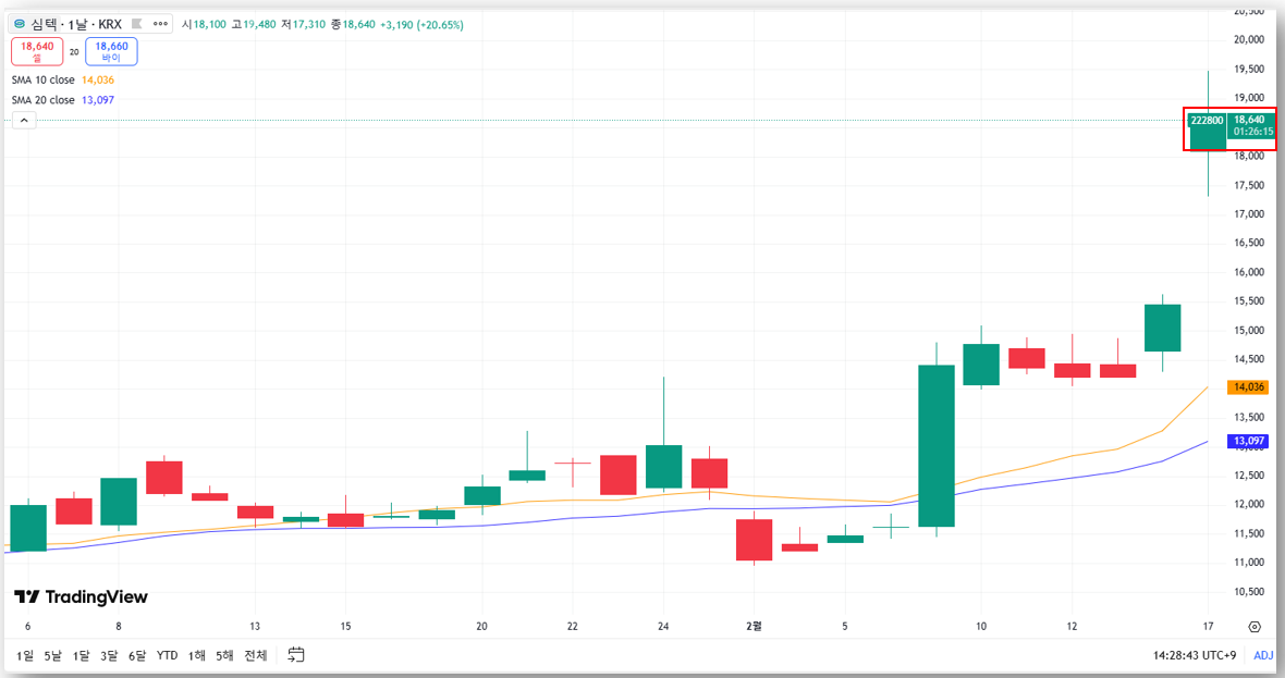 - 이에 따라 심텍이 해당 고성능 반도체 기판 수요 증가의 수혜를 받을 가능성이 커졌으며, 이 소식이 주가 급등을 이끌었다.