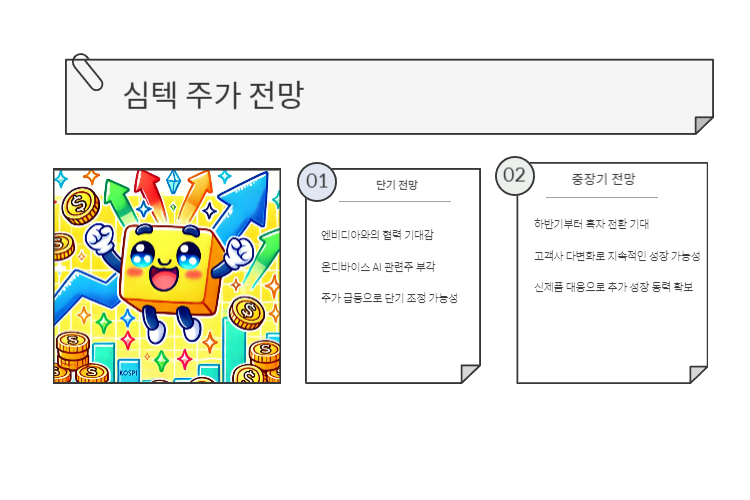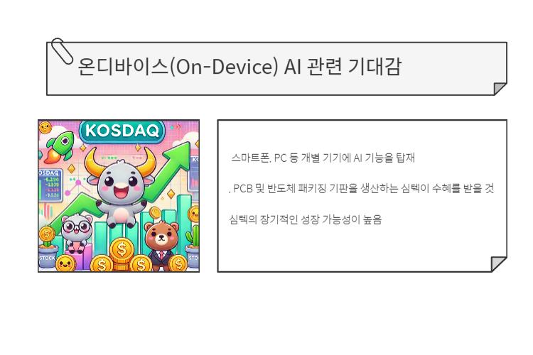 - 글로벌 IT 기업들이 온디바이스 AI 기술 개발에 박차를 가하고 있어, 심텍의 장기적인 성장 가능성이 높아졌다.
