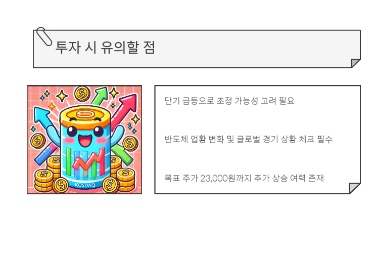 👉 단기적으로는 변동성이 클 수 있으나, 중장기적으로는 실적 개선과 반도체 시장 회복에 따라 추가 상승 가능성이 높다.