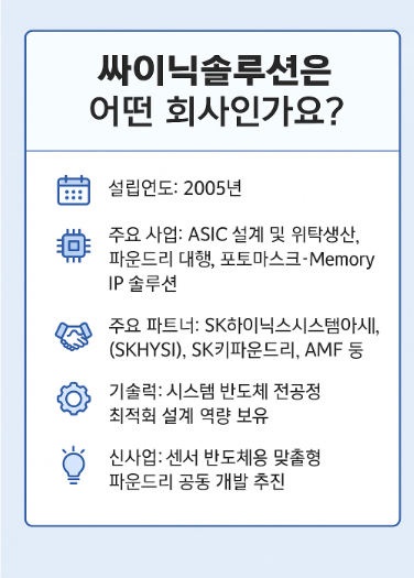 - 주요 사업: ASIC 설계 및 위탁생산, 파운드리 대행, 포토마스크·Memory IP 솔루션