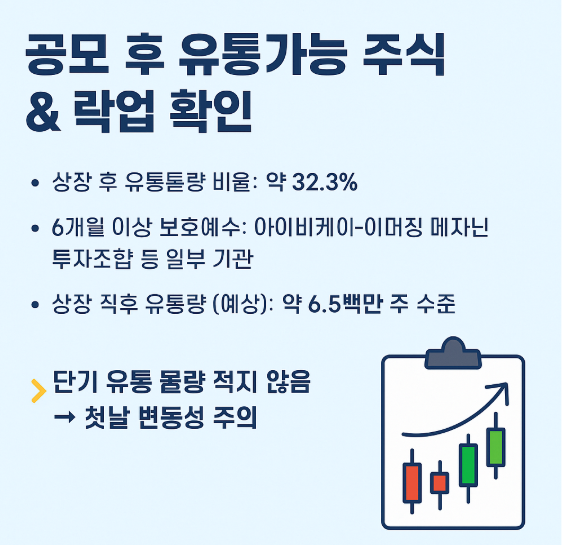 ➡ 단기 유통 물량 적지 않음 → 첫날 변동성 주의