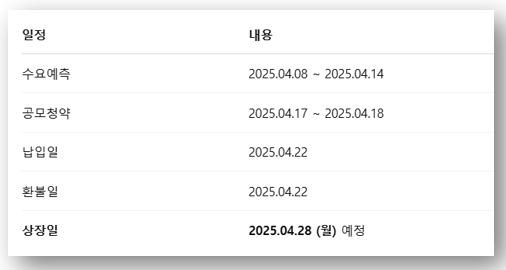 | 나우로보틱스 공모주, 공모가, 수요예측 결과, 청약일정 (0) | 2025.04.23 |