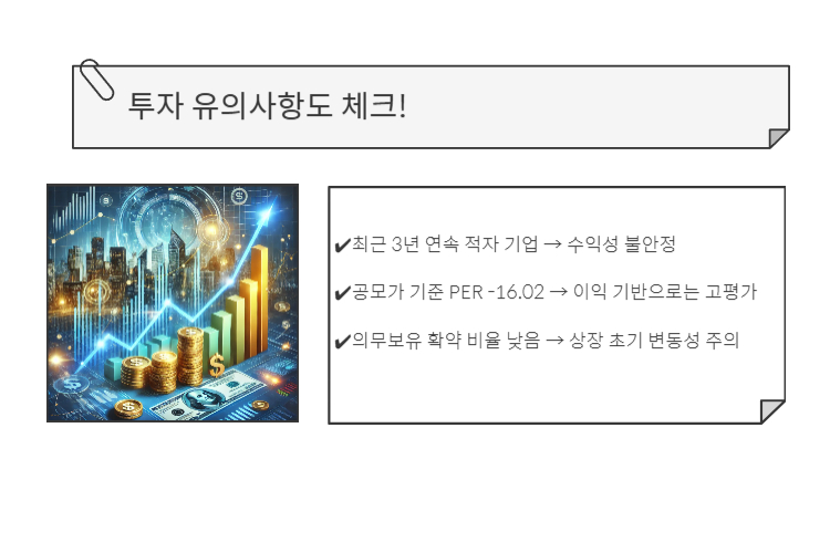 - 공모가 기준 PER -16.02 → 이익 기반으로는 고평가