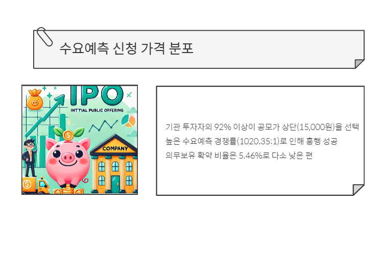 - 기관 투자자의 92% 이상이 공모가 상단(15,000원)을 선택
