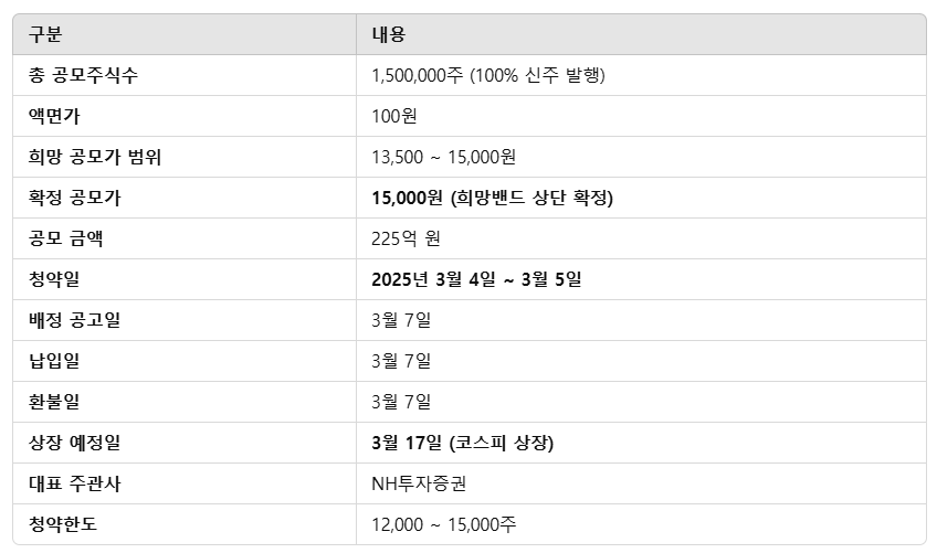 ✔ 청약 가능 증권사: NH투자증권 (단독 주관)