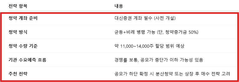 👉 증권사: 대신증권 단독 주관 (계좌 필요)