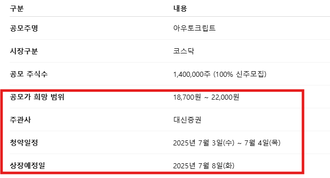 오늘은 아우토크립트의 수요예측 결과, 확정 공모가, 청약 전략을 한눈에 정리해드릴게요!