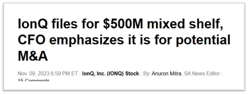 아이온큐는 5억 달러 규모의 혼합 증권 공모를 위한 서류를 제출했는데요, 이는 보통주, 우선주, 채무 증권 등을 포함한 혼합 증권을 등록하여 판매할 수 있도록 하는 규제 서류입니다. 이러한 자금 조달은 자본에 대한 긴급한 필요성 때문이 아니라, 잠재적인 인수합병(M&A) 움직임에 대비하기 위한 전략적 결정으로 해석되기에 그 귀추가 주목됩니다.