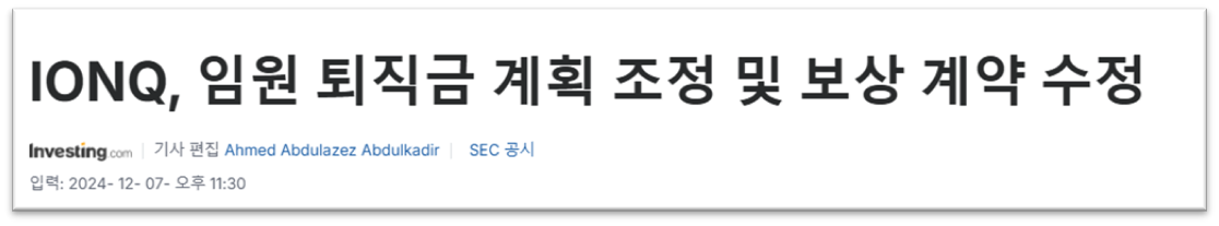 아이온큐는 최근 임원 퇴직금 계획을 강화하고, 성과 기반 보상 계약을 구체화하는 등 경영진 보호 조항을 수정했는데요, 이러한 변화를 통해 인수합병과 같은 상황에서도 주요 임원들의 이탈을 방지하고, 경영진의 안정을 도모할 수 있을 것으로 사료됩니다.