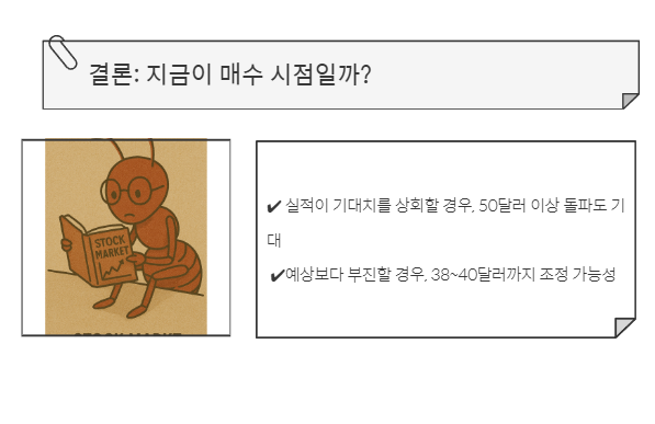 📌 예상보다 부진할 경우, 38~40달러까지 조정 가능성
