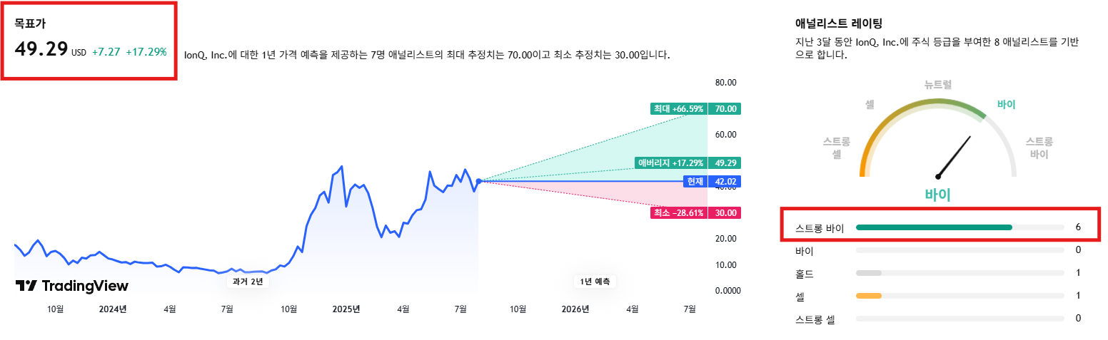 5. 아이온큐 목표 주가 및 애널리스트 의견