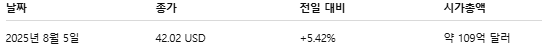 📌 52주 변동폭: 6.54 ~ 54.74 USD