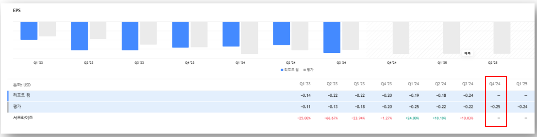 - 2024년 4분기 예상 EPS: -0.25달러 (적자 지속)