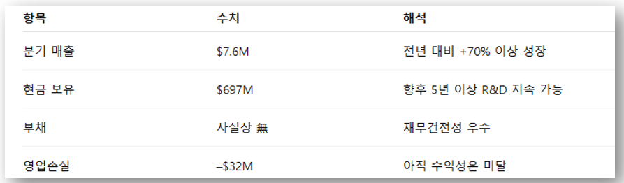 🔍 아직 '흑자 전환'은 멀었지만, 충분한 현금 보유로 기술 개발에 집중할 수 있는 여건이 마련돼 있어요.