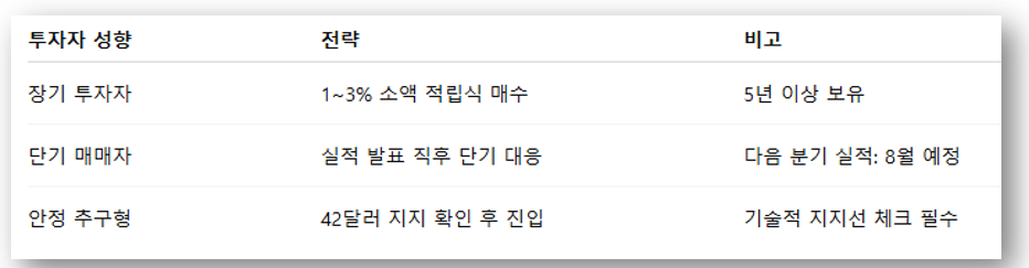 ✅ 참고: 42달러 지지 여부가 중요한 기술적 분기점입니다.