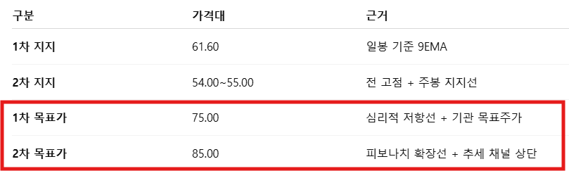 따라서 조정이 온다면, 60~62달러선에서 매수하는 전략이 유효해보입니다.