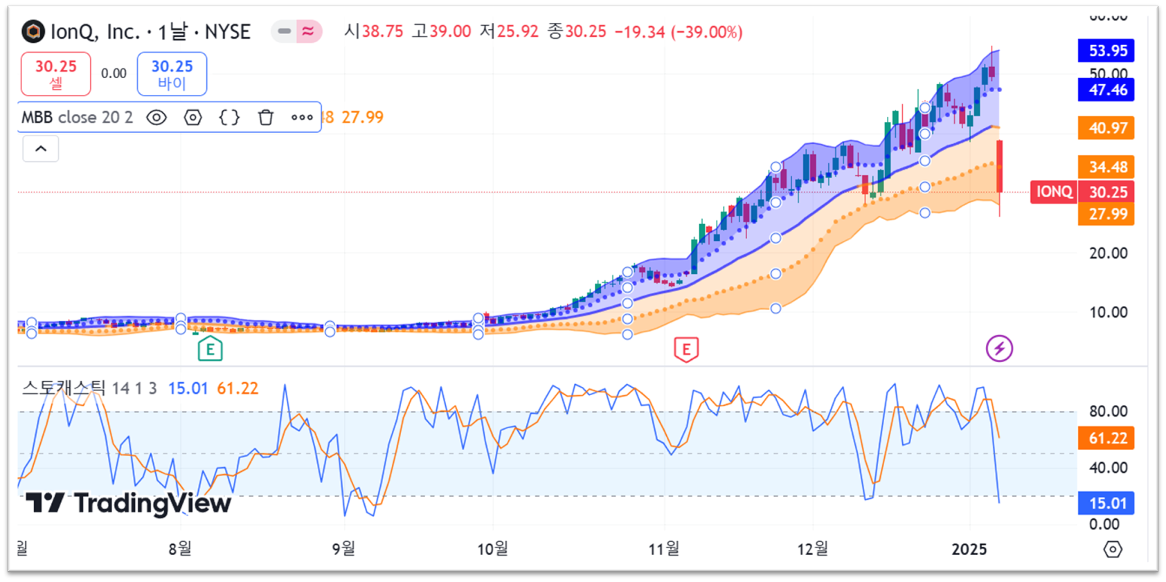 - 직전 고점(39~40달러)과 볼린저밴드 중심선(34.48)이 추가 저항 구간으로 작용할 가능성이 큼.