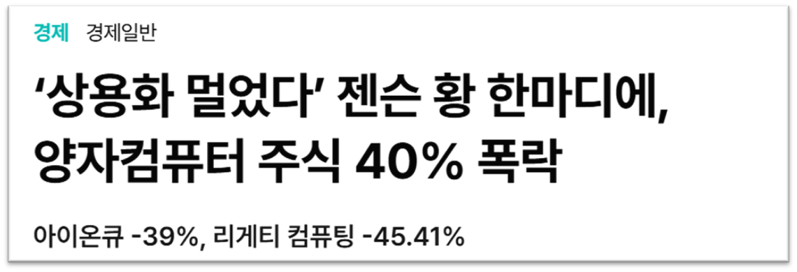 아이온큐 및 양자컴퓨터 주식이 40% 가량 폭락했는데요, 상용화 멀었다는 젠슨황 CEO의 발언에 디웨이브 퀀텀 CEO가 이를 반박하기도 했는데요, 관련 기사들을 요약해보는 시간도 갖겠습니다.