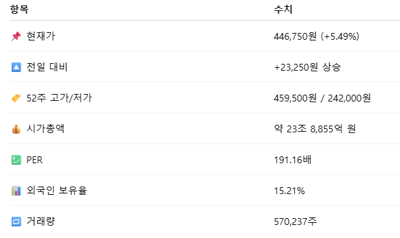 📌 단기 저항선: 460,000원