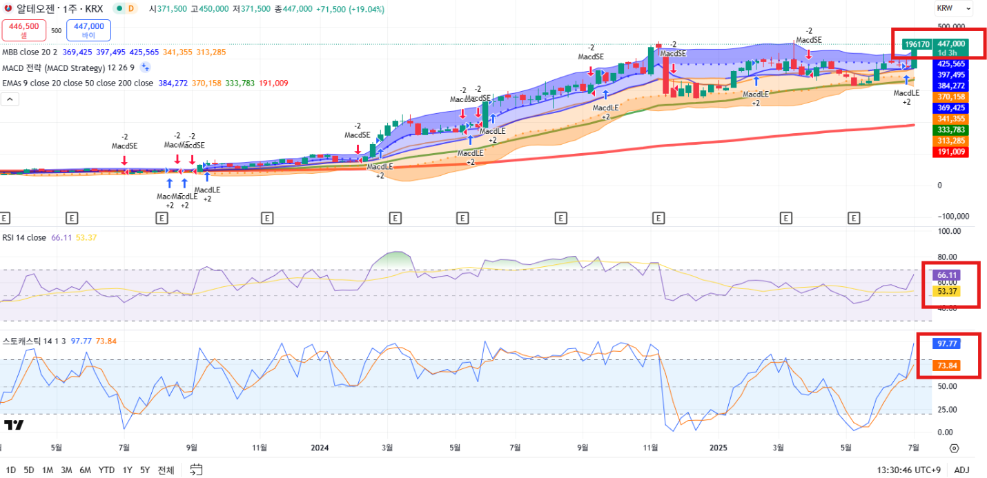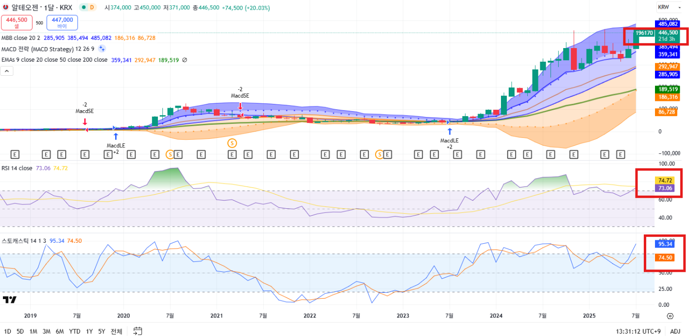 2. 알테오젠 차트 분석 (일/주/월간)