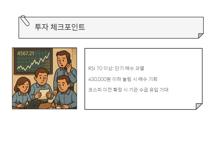 - 430,000원 이하 눌림 시 매수 기회