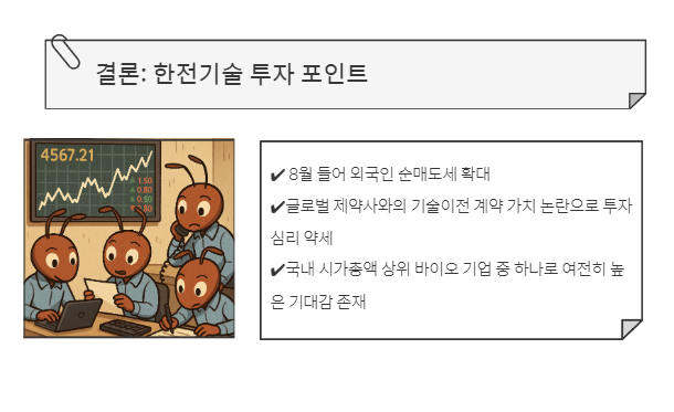 단기적으로는 외국인 매도가 주가 하락 압력으로 작용 중. 그러나 기관은 일부 구간에서 매수 전환, 기술적 반등 시 세력 교체 가능성 존재.