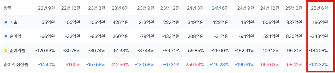 ✔️ 리스크: 높은 밸류에이션(PER 200배 이상), 분기별 실적 변동성 큼